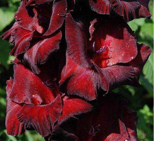 Гладиолус "Черный Бархат" – это изысканный сорт с темно-бордовыми цветами, обрамленными черными краями. Высота растения варьируется от 110 до 130 см. Цветки крупные, бархатистые, достигают диаметра 12-14 см. Период цветения приходится на июль-август.