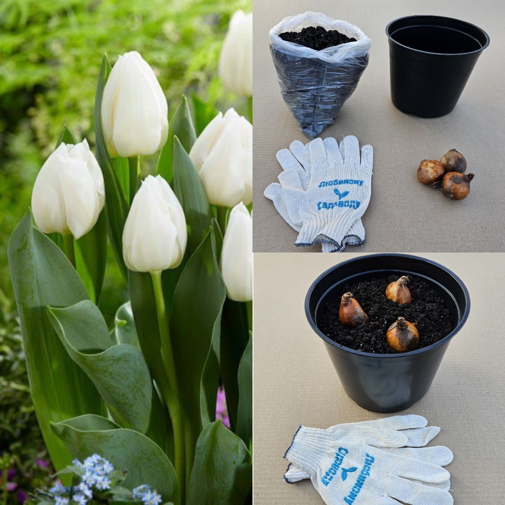 - 3 луковицы тюльпана сорта Уайт Принц